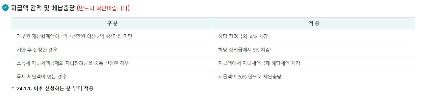 - 종합 소득세 신고할 때 자녀 세액 공제를 받았거나 자녀 장려금을 신청한 경우 금액이 감면됩니다.