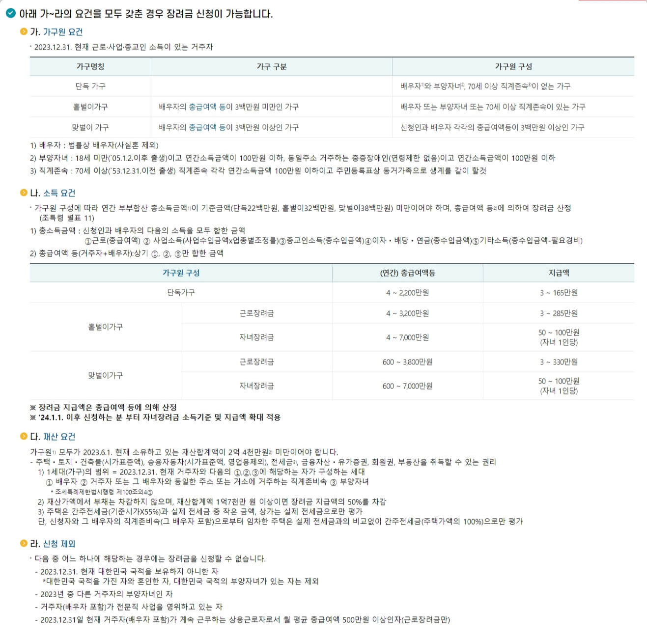 - 가족 총 재산 금액 2억 4천만 원 이상인 경우 신청 불가합니다.