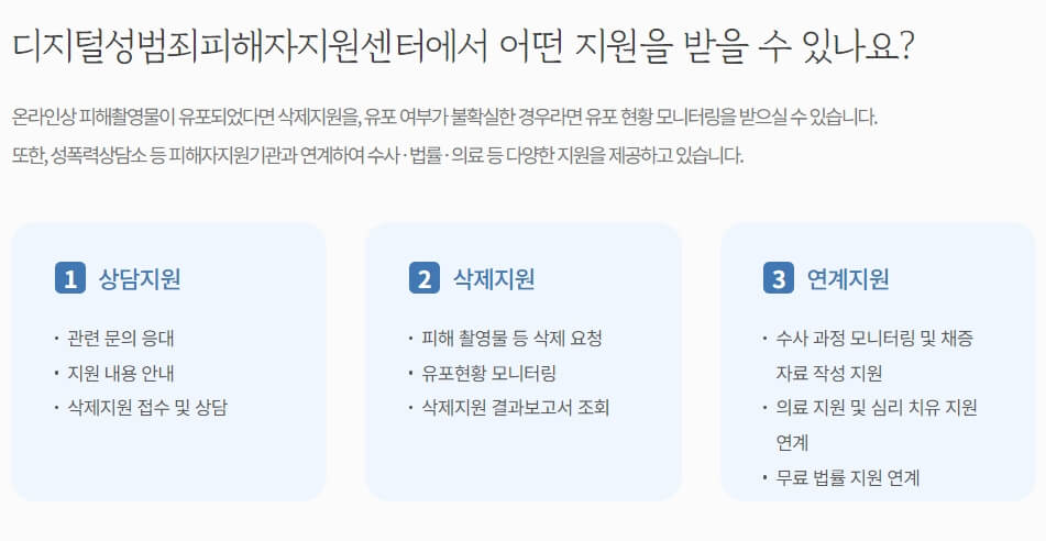 - 온라인 상담 : 디지털 섬범죄 피해자 지원센터