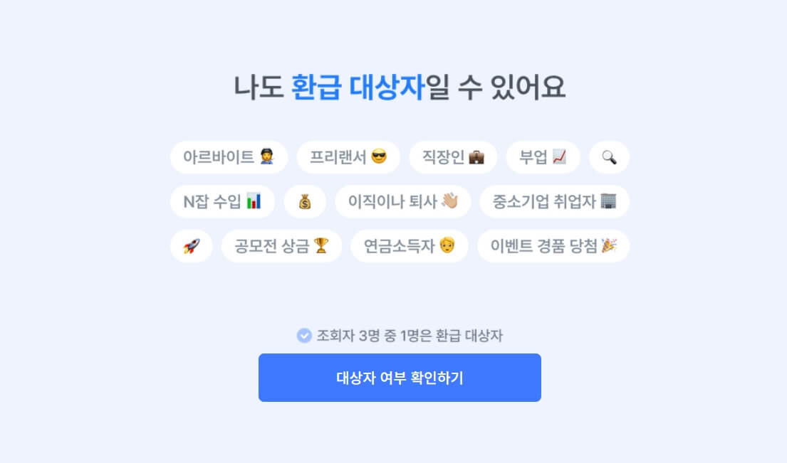 때로는 작년에 냈던 세금 중의 일부를 환급을 받게 되는 경우도 생깁니다. 이때 삼쩜삼 서비스에서 사전 조회를 통해 환급받게 될 금액을 조회할 수가 있습니다.