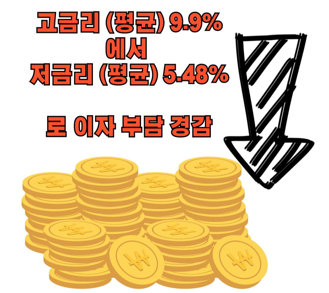 예) 고금리(A저축은행) 5천만 원(B신협) 6천만 원 이면, 대환은 (C은행)에서 1억 원 고금리(B신협) 1천만 원