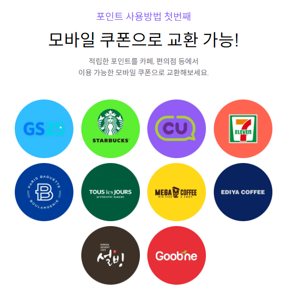편의점 (GS25, CU, 세븐일레븐), 카페(스타벅스, 메가커피, 이디야 커피), 베이커리(파리바게뜨, 뚜레쥬르), 설빙과 굽네 매장에서 사용가능하고 혹은 포인트로 획득한 스페셜 배지를 실물로 교환 가능합니다. 스페셜 배지 굿즈도 너무 귀여운 디자인이라서 모으는 재미가 솔솔 해서 포인트를 모아서 할 수 있는 것들이 많아 좋습니다.