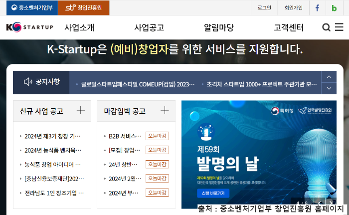 ▶ 온라인 접수 : 중소벤처기업부 창업진흥원