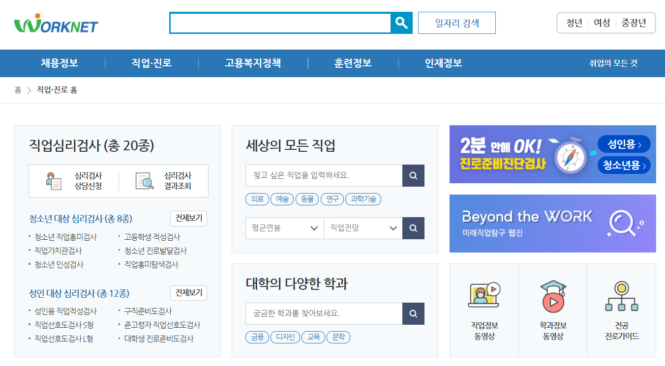 1. 진로정보망 커리어넷 https://www.career.go.kr/cnet/front/examen/examenMain.do
